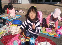 支所に着くなり、リュックサックを降ろして、「お弁当食べていい?」と尋ねてくるはるたろうくんとゆずちゃん。私が「お弁当食べようか!」と言うと、待ってました?とばかりに自分達でシートを準備してお弁当を出し始めました。初めての散歩先でのお弁当はいつもと違い格別だったようで、パクパクモリモリ嬉しそうに食べていました。お天気も良く、とても気持ちの良いお弁当の日となりました。今月も美味しいお弁当ありがとうございました。