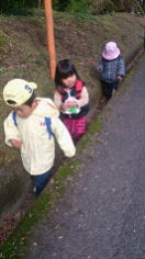 最近気の合うお友達のゆうまくんとさくらちゃんは、「手をつないで歩こうね」の私の声掛けよりも先に、自然と2人嬉しそうに手をつなぎ歩いていました。仲間意識が自然と芽生えたようで嬉しく思う一場面でした。