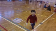 待ちに待ったお弁当の日は、体育館に着くなり「タコする〜!」とさっそく凧揚げを楽しみました。自分達で作った凧を持って走ると”フワッ“と凧が上がり「みてみて!」と私の周りを何度も走り周り、とっても嬉しそうに教えてくれるゆうまくんでした。ふうかちゃんも「おいでおいで〜!」とお友達や私たちを誘って、凧を持って追いかけっこを楽しんでいました。