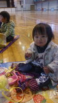 かさぎ保育園のお友達と途中で合流して一緒に凧揚げを楽しんだり、わらべうたやボール遊びなどして広い体育館でたっぷり遊んだ後は、待ちに待ったお弁当タイム♪ 皆さんのご想像通り、やったぁ〜!とさっそくお弁当を広げ大満足な笑顔でモリモリパクパク食べていました。たっぷり体を動かした後のお弁当は格別でみんな完食でした。今月も美味しいお弁当ありがとうございました。