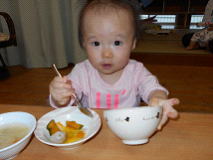 先週から入園のせいらちゃん。まだ1週間と言う事もあり、なかなか慣れず涙することも多くあります。しかし食べることは大好き。大きな口を開け、手づかみで良く食べます。その時ににこっと笑顔を見せてくれることが多くなりました。