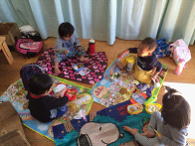 今週は,子どもたちが楽しみにしていたお弁当の日。愛情いっぱいのお弁当の準備ありがとうございました。当日天気にも恵まれ、散歩に出発することができました。0歳児にとってリュックを背負っての散歩はまだ難しい為、普段と特別変わることはありませんでしたが、いつもよりゆっくり散歩をすることができました。