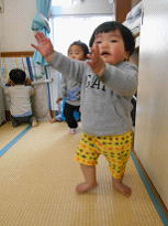 まだまだ不安定で尻もちをつきますが、それでもめげず何度も立ちあがり歩いています。またりゅうのすけくんもここ数日で簡単な移動など歩いてするようになりました。ハイハイから歩くことができるようになった子どもたち。見える世界も異なり新鮮な景色だと思います。怪我のないように見守りながらも、歩くことを十分に楽しんでほしいと思います。