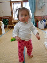 お家では「数歩歩けるようになりました」と報告を受け、いまかと楽しみにしていましたが、なかなか園では歩く姿を見せてくれずにいたももはちゃん。しかしここ数日歩いている姿をたくさん見せてくれるようになりました。